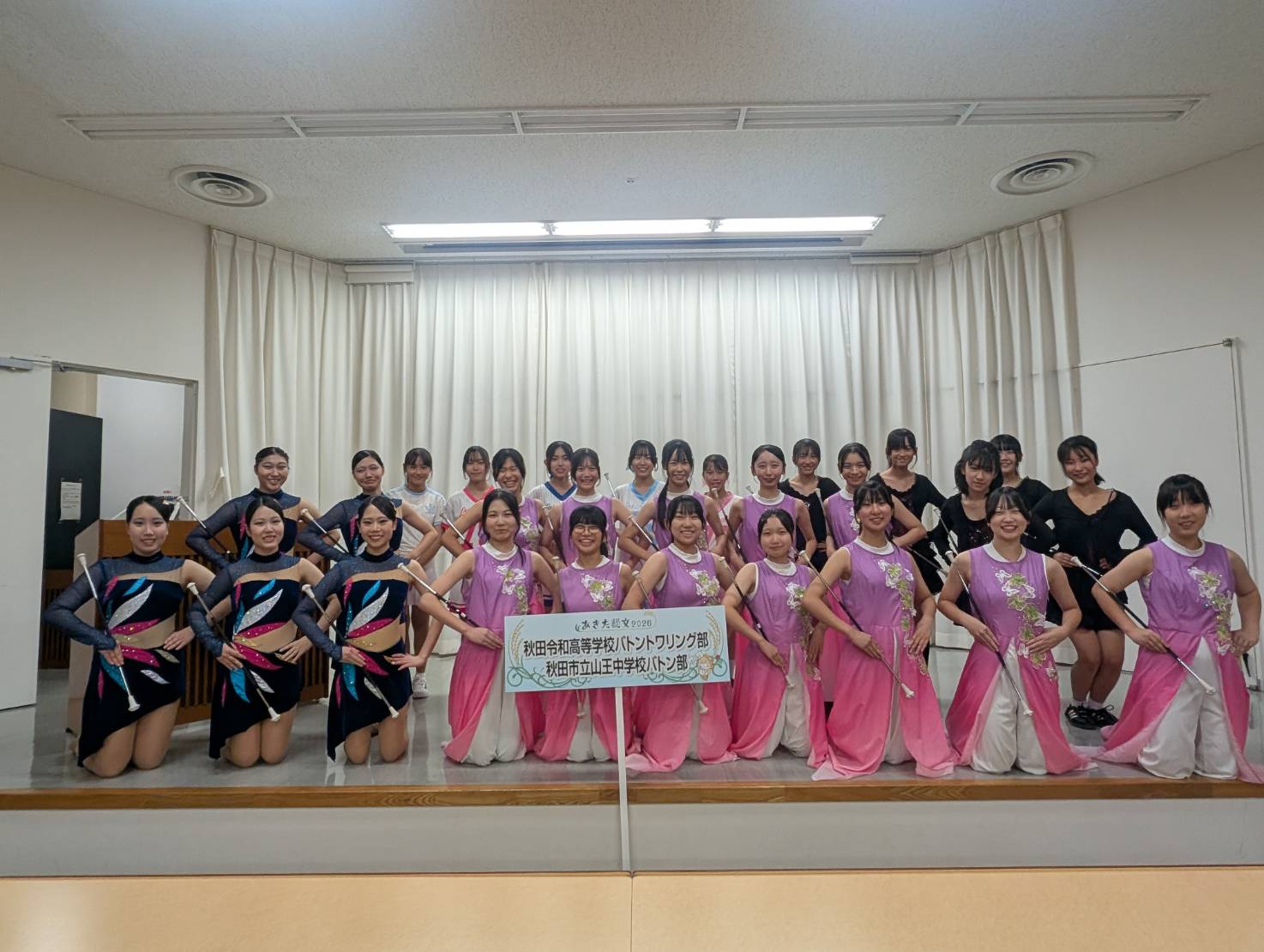 10月11日(土)に行われたあきた総文祭2025開会式後のパレードで、本校バトントワリング部と秋田市立山王中学校のバトン部が、ノースアジア大学明桜高校の吹奏楽部の演奏に合わせ、合同でパレードに出演しました。